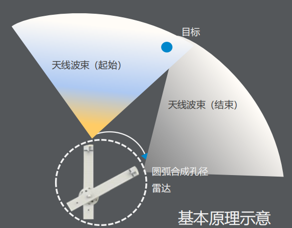 繞軸心旋轉(zhuǎn)的轉(zhuǎn)臂帶動(dòng)頂端的寬波束天線掃過(guò)目標(biāo),進(jìn)行圓弧合成孔徑高分辨率成像